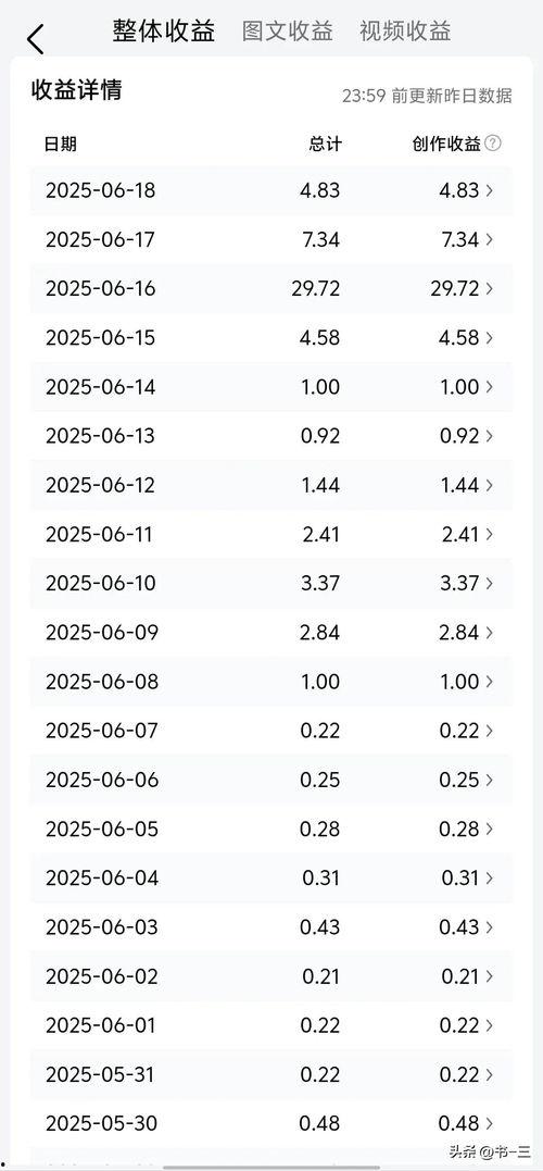 首先,我们要弄清楚头条收益的来源。头条收益主要来自于广告收入,包括横幅广告、视频广告、原生广告等。当然,还有一些平台会根据用户的阅读时长、点赞、评论等行为给予一定的奖励。